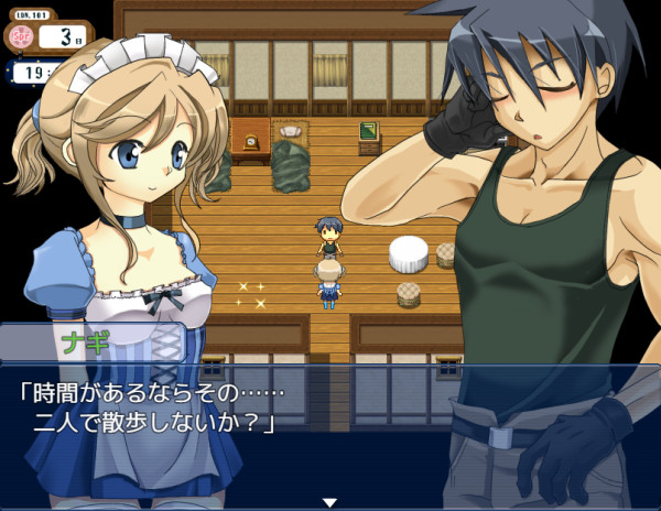 二周目特典でお金はあるし色々やりたいことがあるんだけど、資材の関係でまずは道具屋を作らないとどうしようもないので、道具屋が建つまでひたすらナギと過ごしている