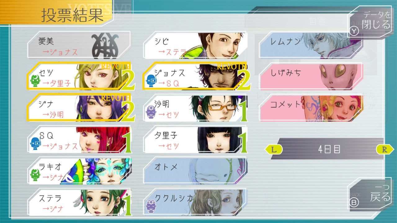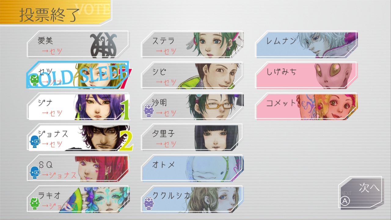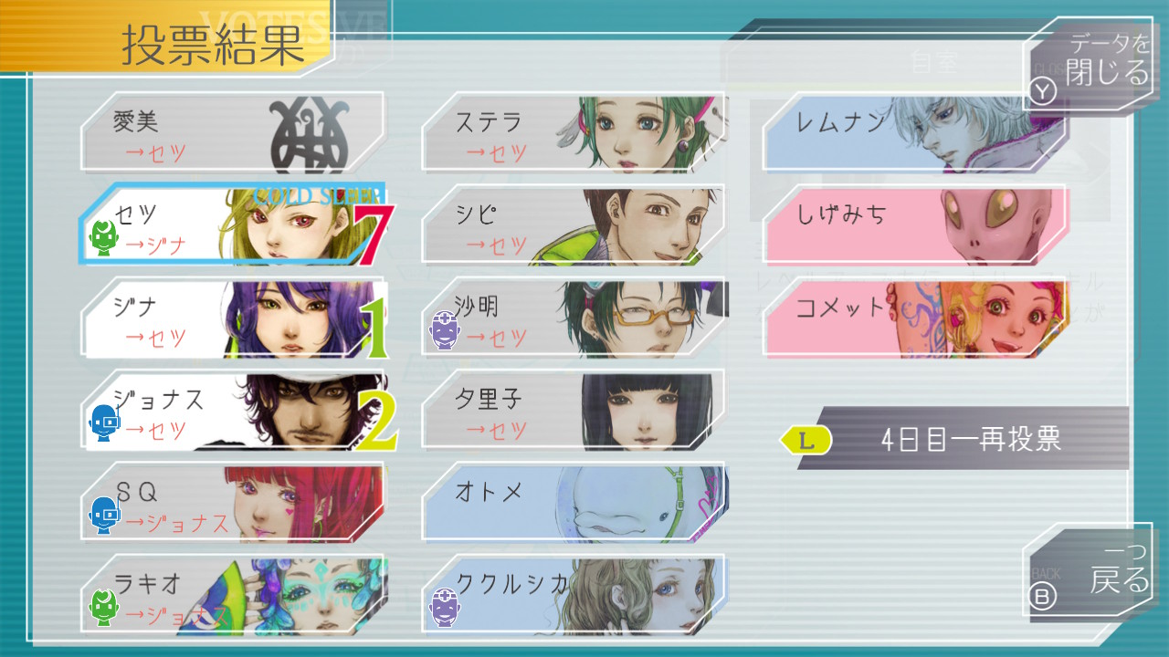 ・ジナへの票を避ければジョナスをCSして終わると思い、ジナにかばうコマンドを入れるとセツ以外のキャラはみんな同調