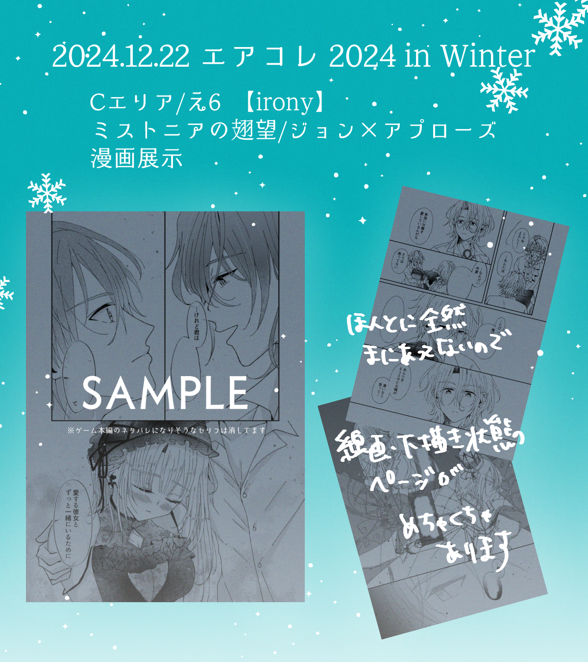 エア♥コレクション2024 in Winterにてミストニアの翅望/アスコット迷い路END軸のジョンの漫画を展示します!
